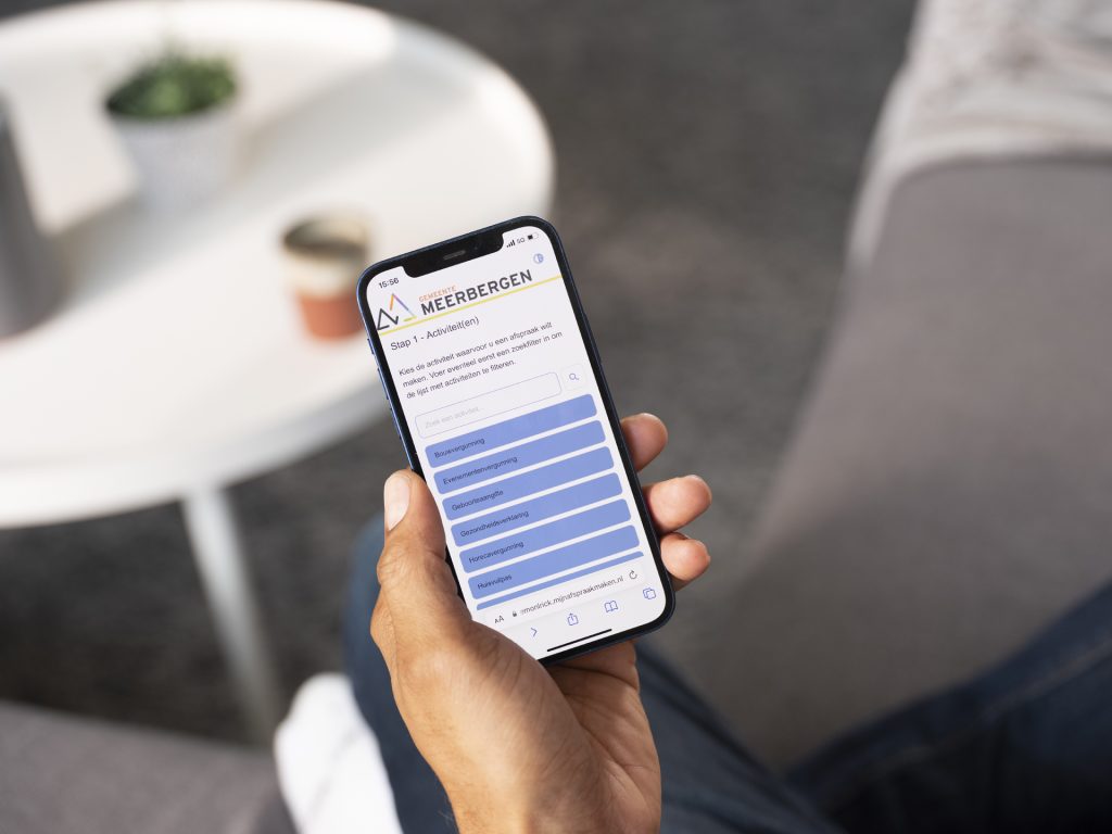 ‘Naarmijnafspraak’ is een webapplicatie waarmee bezoekers bij de hand worden genomen op weg naar hun afspraak. Zo kunnen ze zich aanwezig melden in het gemeentehuis en hoeven ze niet meer in de rij te staan voor de receptie of aanmeldzuil. Ook kunnen ze via de webapplicatie worden opgeroepen.